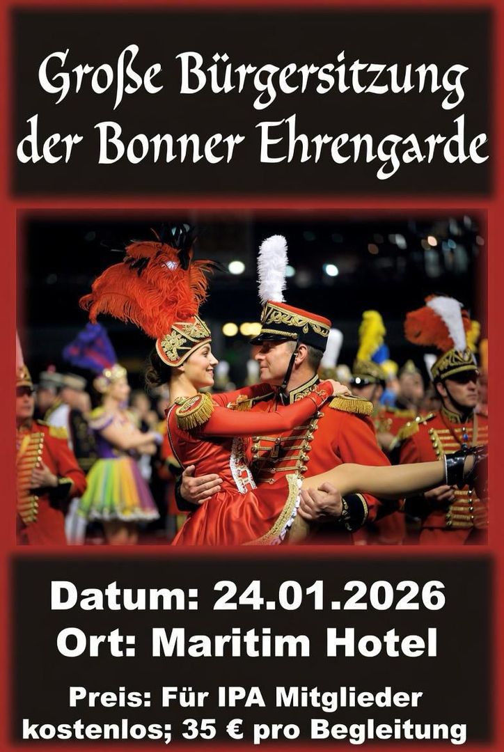 letzten Jahr konnte die IPA Bonn ein Kartenkontigent für die Sitzung am 24.01.2026 im Maritim Hotel ergattern.