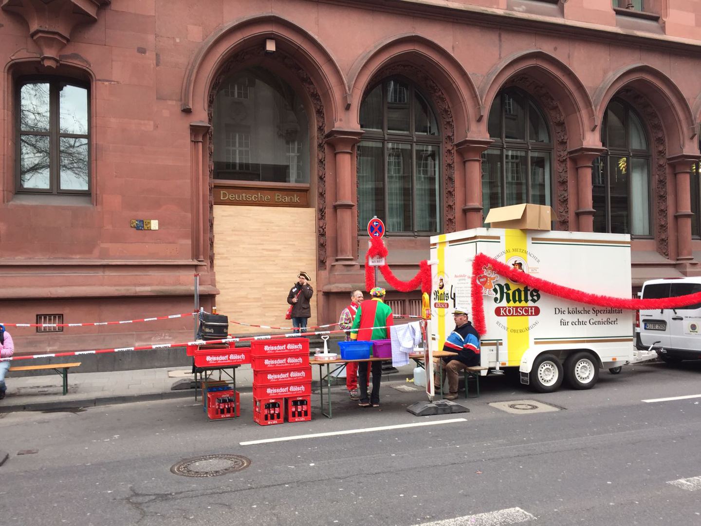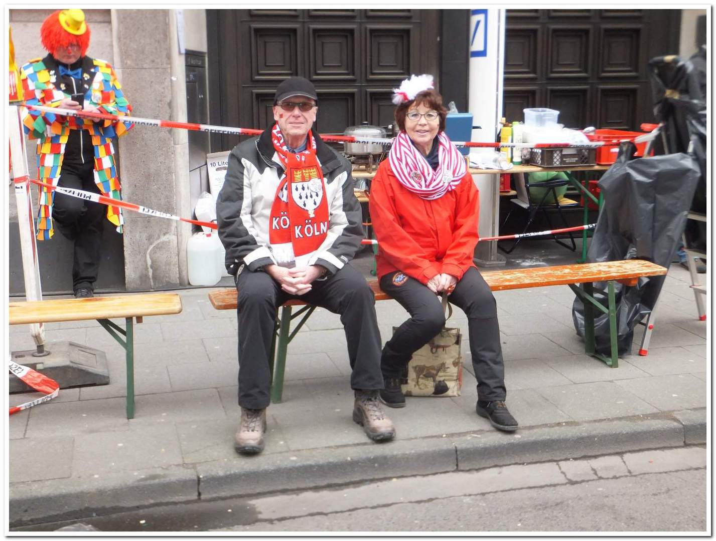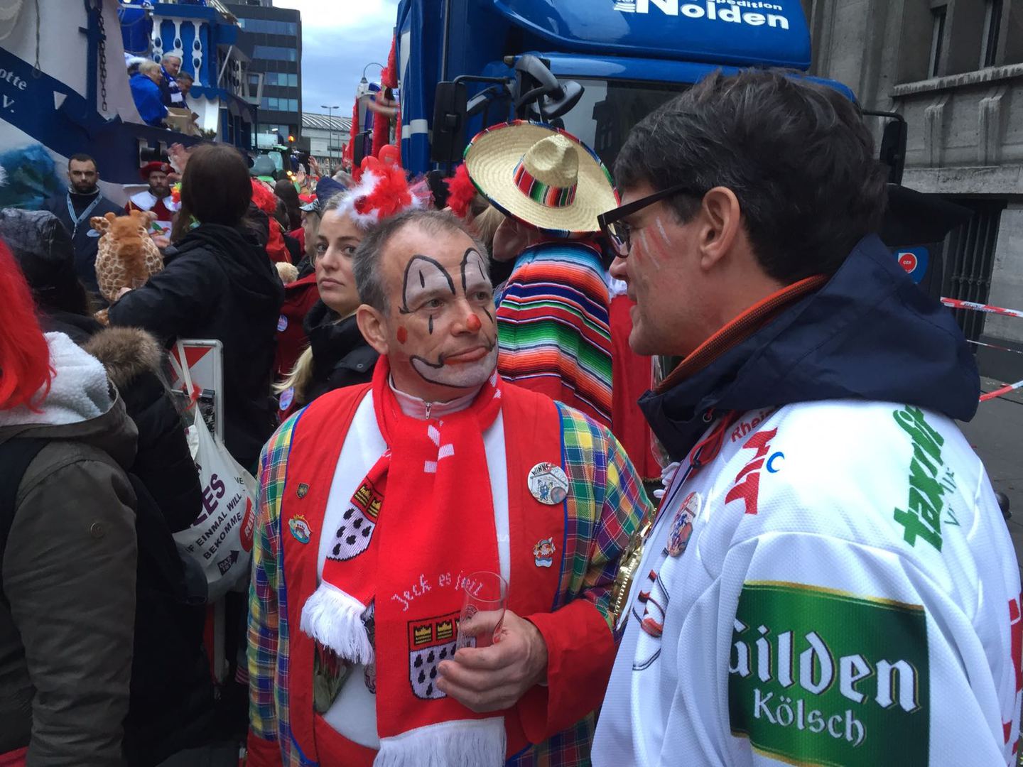 So war es für uns dann natürlich selbstverständlich - wie schon 2016 – dem Ruf der IPA Köln zu folgen und dabei zu helfen, deren über 100 nationalen und internationalen Gäste wie gewohnt in den Genuss des Rosenmontagszuges kommen zu lassen: auf- und abbauen (in diesem Jahr wegen des Pferdeunfalls bei Dunkelheit), Zugwegsicherung, Bewirtung, dabei aber auch die Gelegenheit, die Zugteilnehmer zum Kamellewerfen zu animieren und die besondere Atmosphäre zu genießen.“